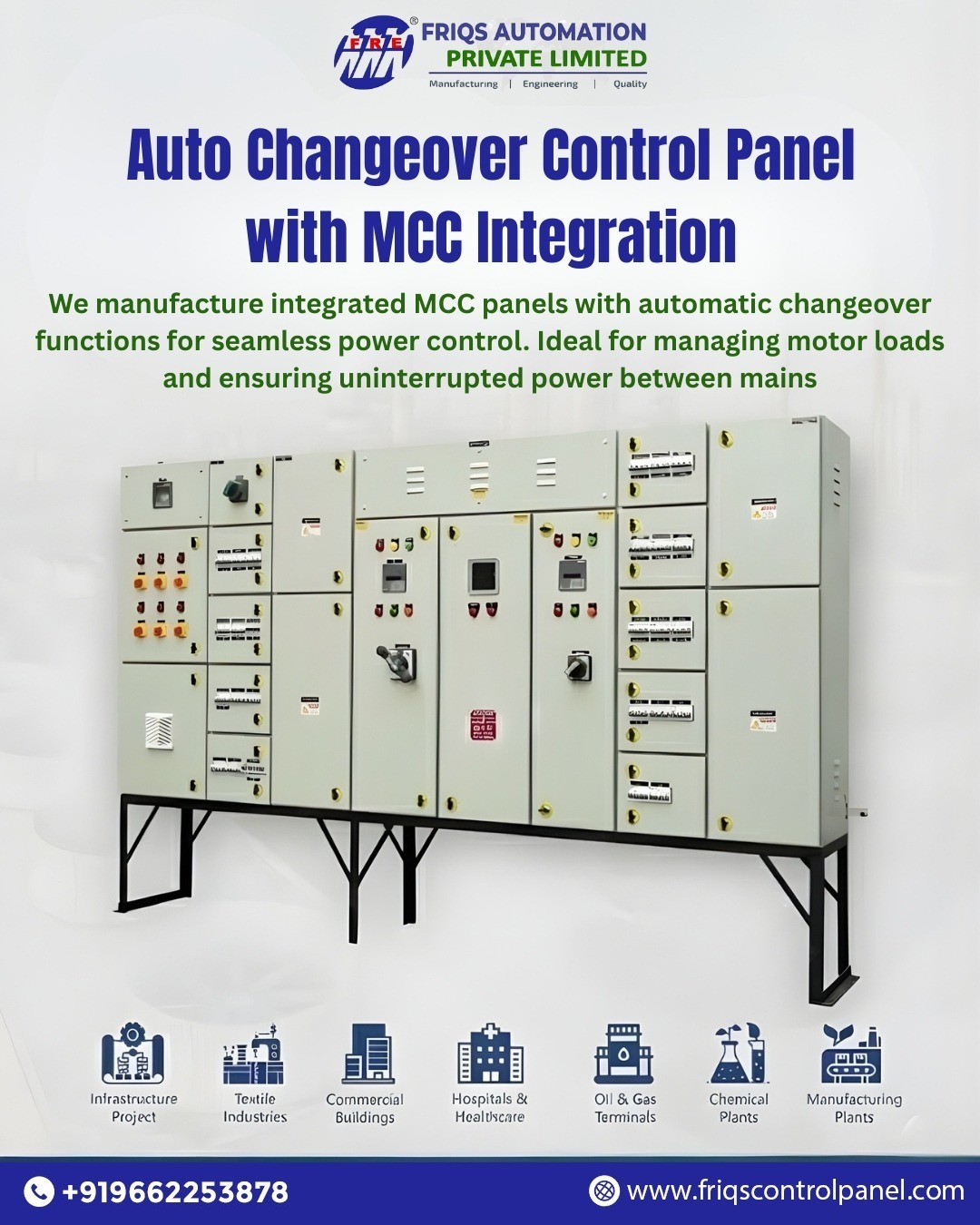 The Auto Changeover Control Panel with MCC Integration by FRIQS is an advanced electrical solution designed to deliver continuous power supply and centralized motor control for industrial plants, hospitals, and commercial facilities. This integrated system intelligently manages power source switching while ensuring safe and efficient operation of multiple motors from a single control point.