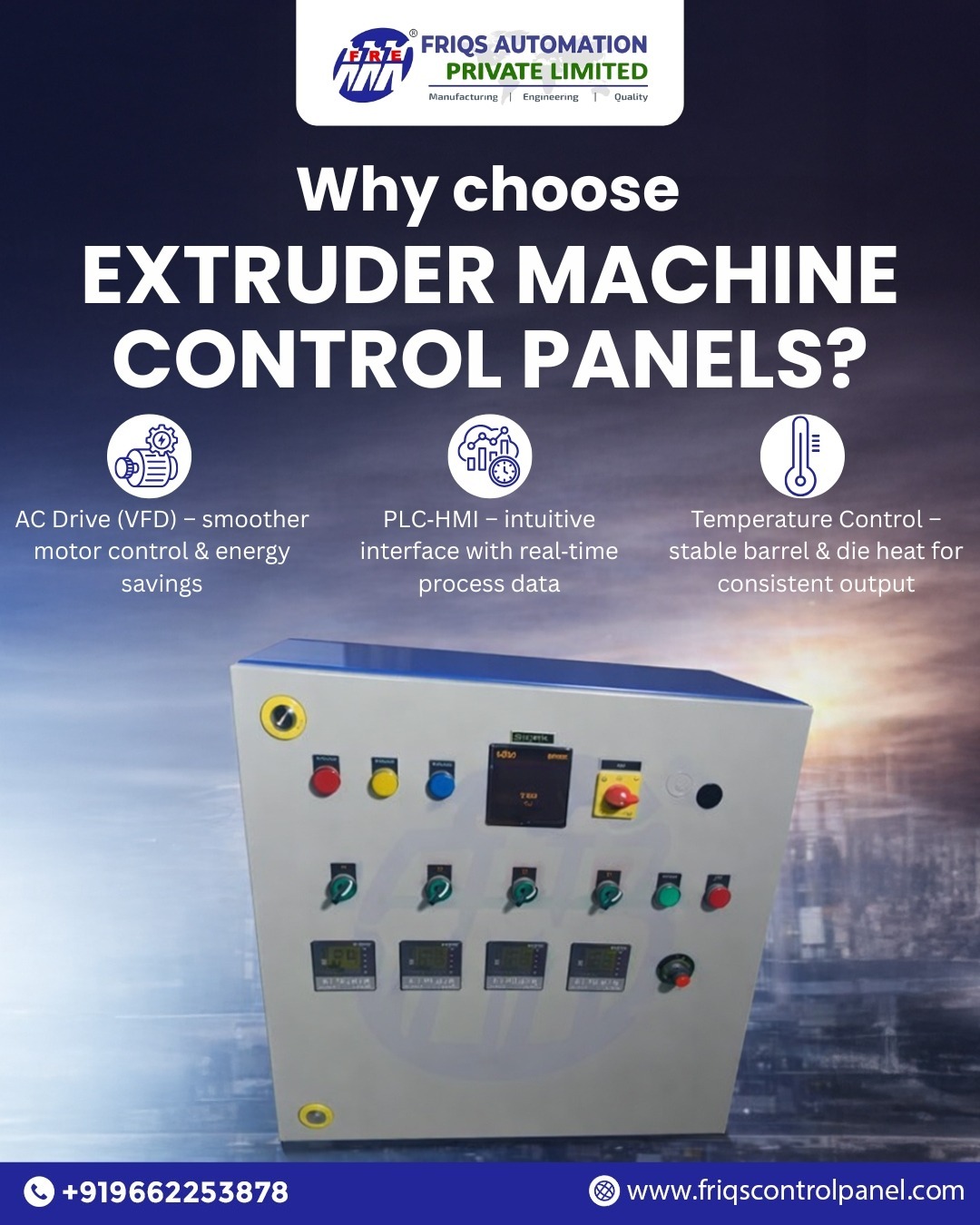 As a reliable Extruder Machine Control Panels Supplier in Gujarat, Friqs Automation ensures premium quality, customization, and nationwide technical support.