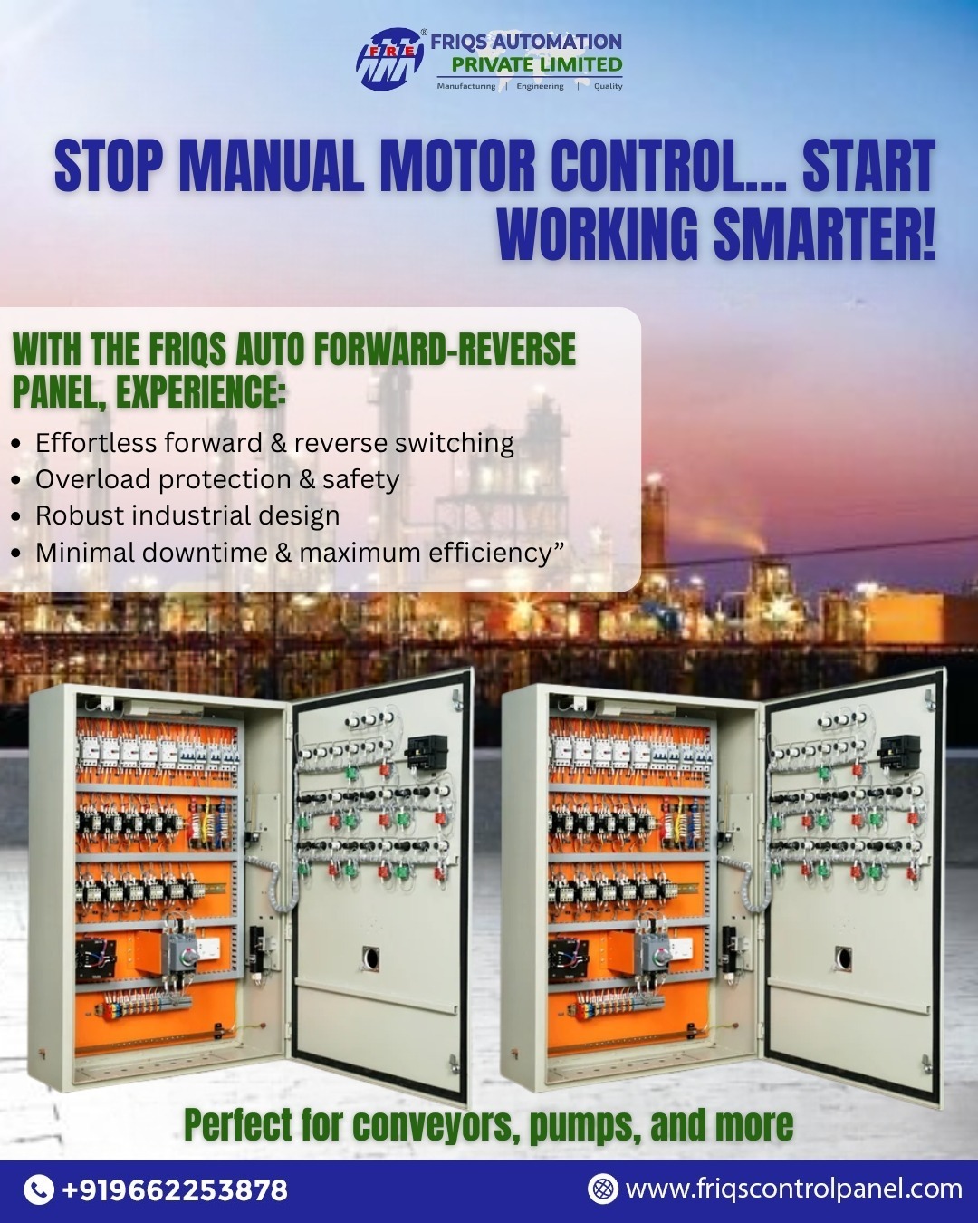 #AutomationSolutions #IndustrialAutomation #VFDPanels #PLCHMIPanels #ServoDrivePanels #MCCPanels #PCCPanels #DistributionPanels #APFCPanels #SmartAutomation #FRIQSAutomation #Industry40 #AutomationExperts #ManufacturerInIndia