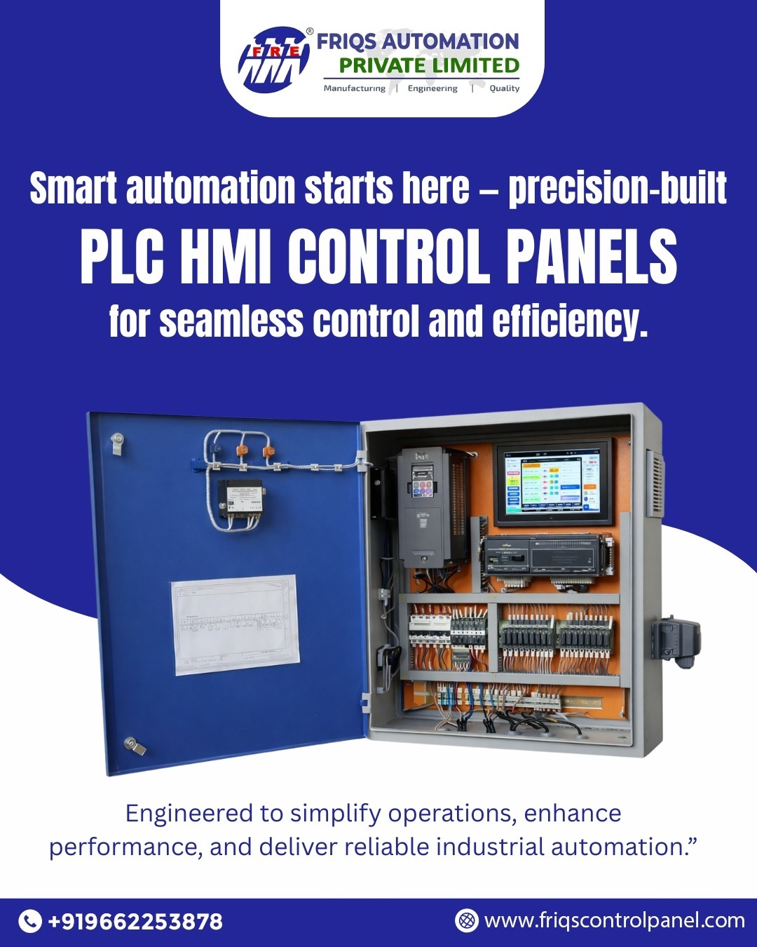 A Best PLC-HMI Control Panel Manufacturer In Ahmedabad from FRIQS Automation is the ultimate solution for modern industrial automation, acting as both the brain and the interface of your machinery. By integrating a Programmable Logic Controller (PLC) with a Human-Machine Interface (HMI), these panels allow seamless monitoring, real-time control, and intuitive operation of complex industrial systems. Say goodbye to manual switches and enjoy precision, safety, and efficiency at your fingertips.