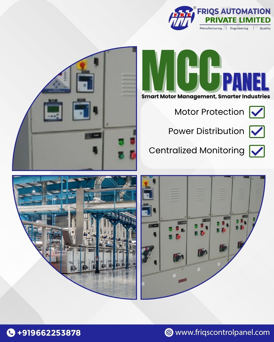 At Friqs Automation Private Limited, we manufacture high-performance MCC (Motor Control Center) Panels designed for precision, reliability, and efficient motor control. Built for demanding industrial environments, these panels provide centralized management of multiple motors through integrated starters, circuit breakers, and control units—ensuring organized power distribution, enhanced safety, and minimal downtime. Ideal for manufacturing, power plants, water treatment, and oil & gas industries, our MCC Panels deliver seamless operation and superior efficiency.