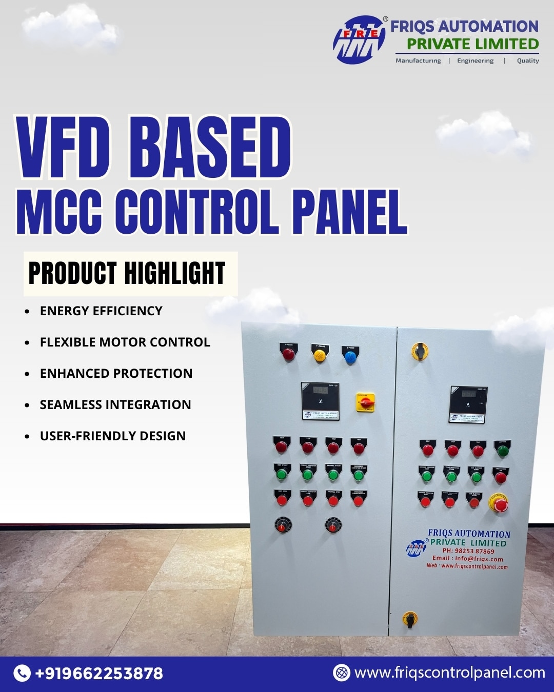 The VFD Based MCC Control Panel is more than just a control system—it’s a complete solution for efficient, safe, and reliable industrial motor management. At Friqs Automation Private Limited, we blend technology with engineering expertise to deliver panels that empower industries with better control and lower operational costs.