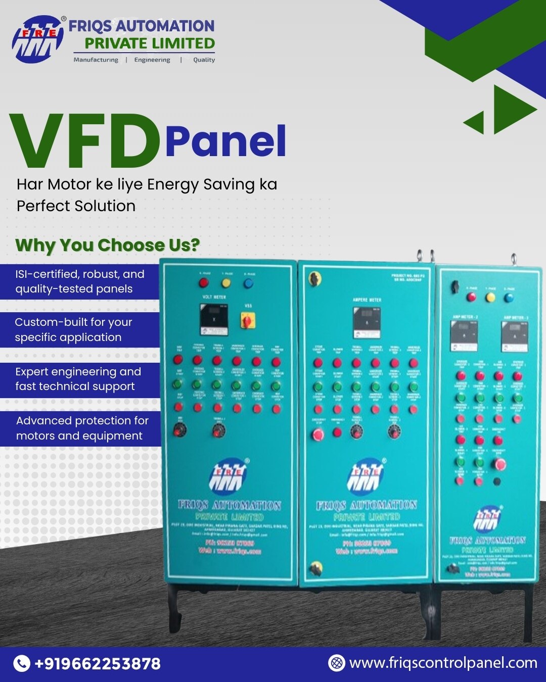 In today’s industrial world, efficiency isn’t just about saving electricity—it’s about creating smarter, more reliable operations. At FRIQS Automation Private Limited, we specialize in designing and manufacturing precision-engineered VFD Panels that give industries complete control over motor speed, energy usage, and operational consistency. Recognized as the Best VFD Panel Manufacturer in Ahmedabad, we deliver solutions that enhance productivity while reducing operational costs.