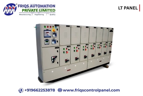 Top LT Panels Manufacturers in Ahmedabad. FRIQS Automation Private Limited delivers advanced LT Panels engineered to ensure safe and seamless low-voltage power distribution in industrial and commercial environments. What is an LT Panel? • LT Panels (Low Tension Panels) are used to manage and distribute electrical energy at voltages up to 440V. • These units receive power from a transformer and route it efficiently to various machines, loads, and distribution boards. • Perfect for large facilities that require robust indoor or outdoor power distribution. Essential Features of Our LT Panels • Rated Voltage: Supports 430V, 3-phase, 50Hz operations • Mounting Style: Sturdy floor-mounted design, with fully enclosed and extendable configurations • Construction: Built using sheet metal with options for open, semi-enclosed, or completely enclosed housings • Monitoring Instruments: Displays voltage, current, power factor, and frequency in real-time • Usage Areas: Integrates seamlessly with motors, control centers, transformers, and industrial machinery Key Components Built In • Circuit Protection (MCB/MCCB): Shields your system against overloads and short circuits • Bus Bars: High-conductivity bars for stable and efficient power transmission • Relays & Contactors: Enable automated switching and protection logic • Energy Meters & Displays: Real-time monitoring of energy parameters • PLC & VFD Compatibility: Supports automation with programmable logic and smooth motor starts • Auto Changeover Units: Maintains continuous power without manual intervention • Smart Monitoring: SCADA and IoT integration for remote access and real-time diagnostics Smart Advantages of Our LT Panels • Real-Time Power Monitoring: Track usage and system health accurately • Energy Efficiency: Helps reduce losses and cut operational costs • Fault Detection: Proactively identifies system issues • Improved Power Factor: Keeps systems operating efficiently • Enhanced Safety: Equipped with overload protection and interlocking systems • Remote Management: Connects to SCADA or IoT systems for off-site control Need a reliable, custom-built LT Panel solution? Trust FRIQS Automation Private Limited—your partner in delivering safe, scalable, and efficient power distribution.